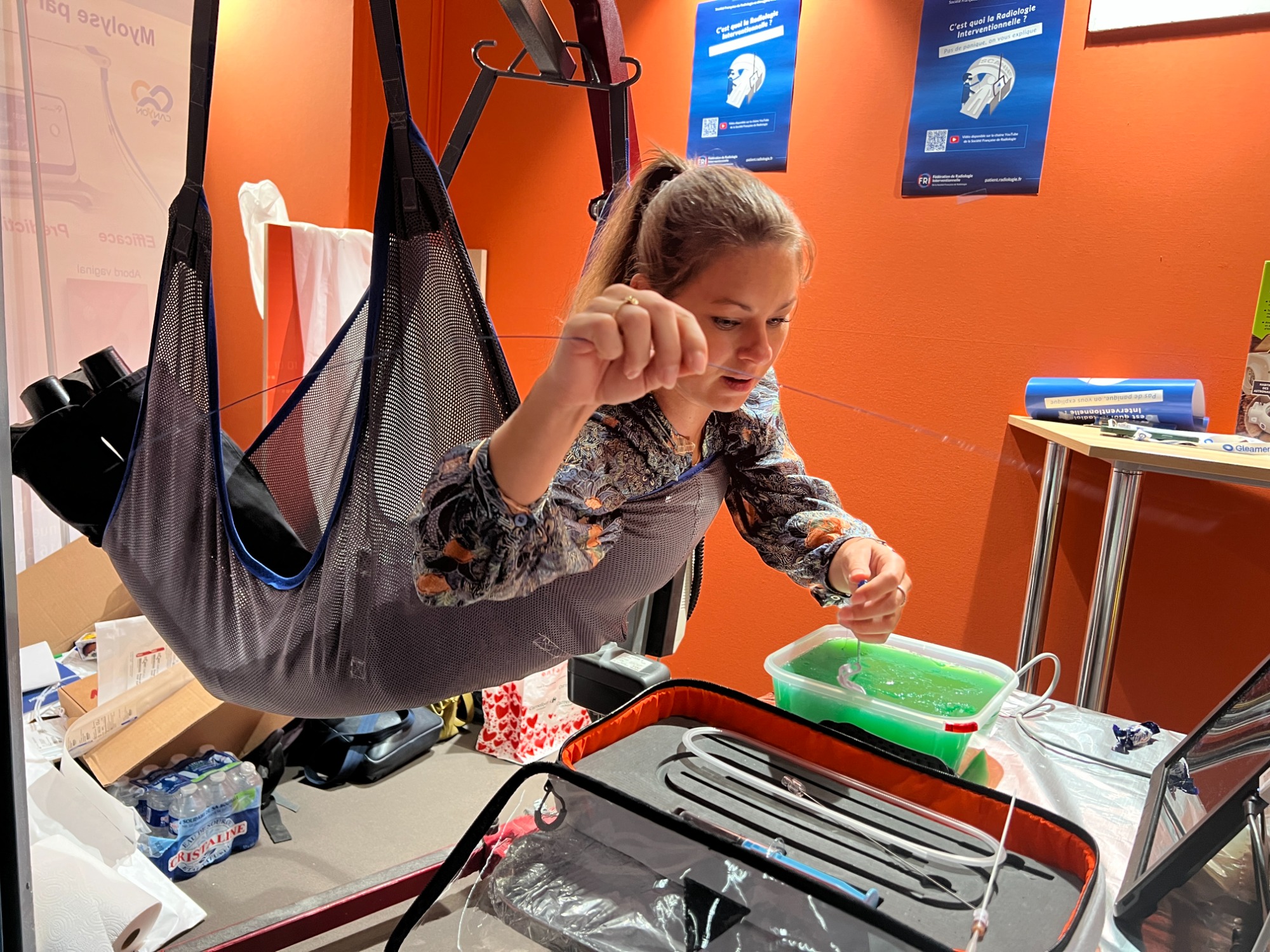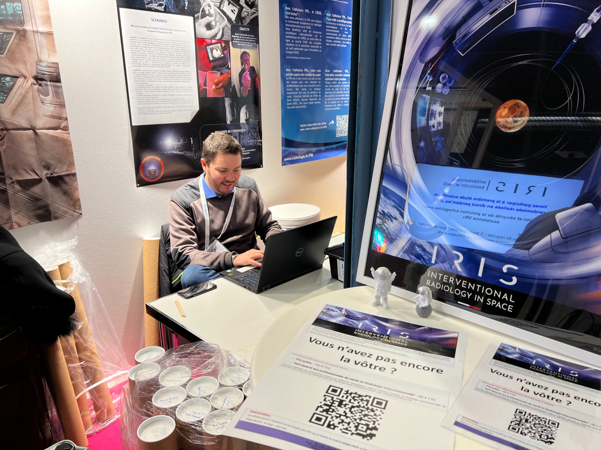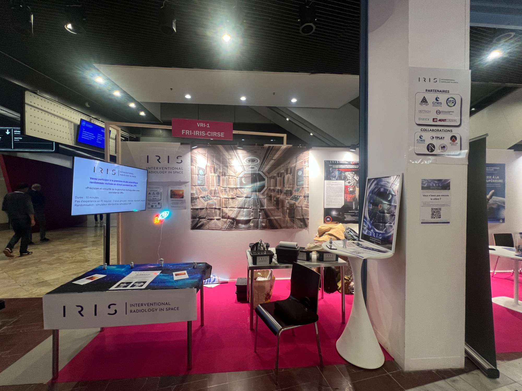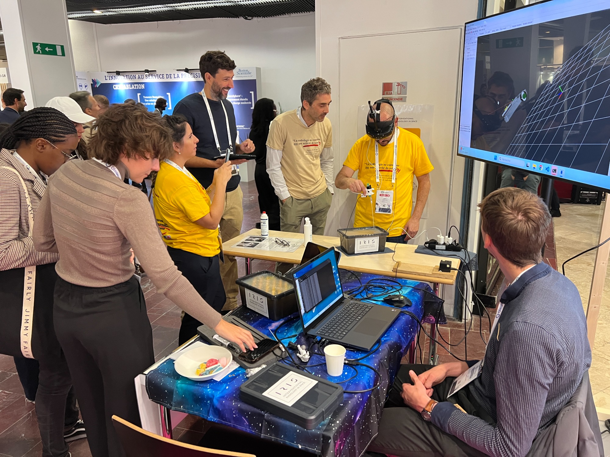 Le stand IRIS au VRI 2024 permet pour la première fois de présenter à la communauté radiologique française non seulement l'état d'avancement du projet — des publications scientifiques dans Cardiovascular and Interventional Radiology, aux résultats de la mission analogue Asclepios III — mais aussi les outils concrets : la Mars IR Toolbox, les fantômes de simulation en agar-agar développés avec le Dr Pauline Brige du LIIE, et les échographes portables utilisés lors des entraînements. Les visiteurs peuvent s'initier aux gestes de drainage sur simulateur suspendus au dessus du sol, dans l'esprit pédagogique qui a guidé tout le projet depuis son origine.