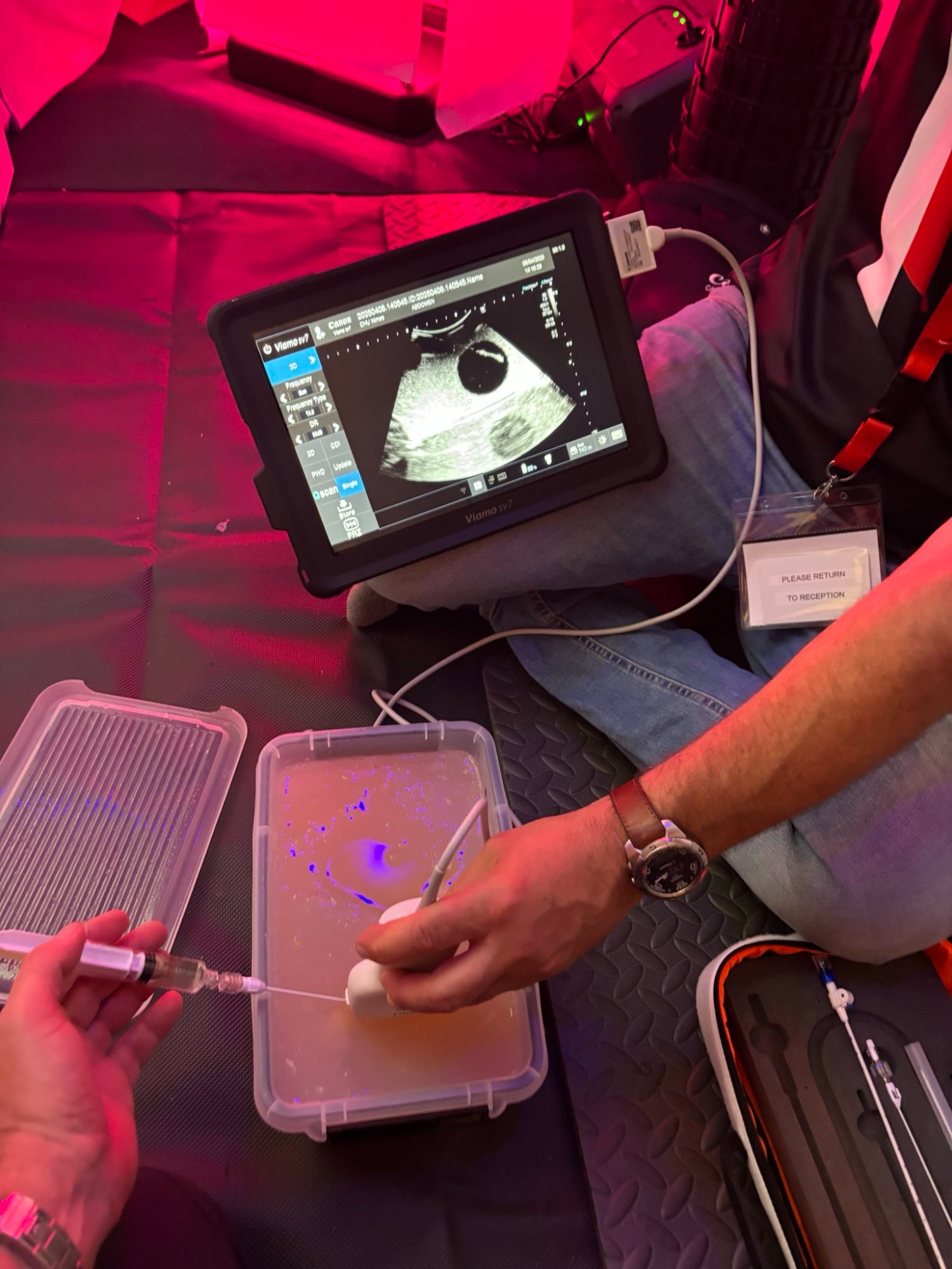La trousse d'urgence conçue par le groupe IRIS dans la suite du challenge MITBO pour les procédures de radiologie interventionnelle a pu être testée par les astronautes analogues. Chacun devait réaliser une intervention médicale sur un fantôme sous guidage échographique selon les techniques de la radiologie interventionnelle, une technique applicable à un grand nombre de pathologies en alternative aux techniques chirurgicales impossibles à réaliser dans les conditions d'un vol spatial.