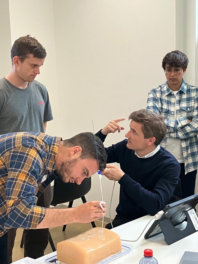 Ce travail a été piloté par le Pr Julien Frandon, radiologue et responsable de l'unité d'imagerie interventionnelle au CHU de Nîmes. Il s'est rendu à l'EPFL pour rencontrer les six astronautes analogues sélectionnés. Partant du constat qu'il s'agit d'un geste stéréotypé et non complexe, il a conçu une formation étape par étape dont l'idée lui est venue en montant des meubles Ikea.